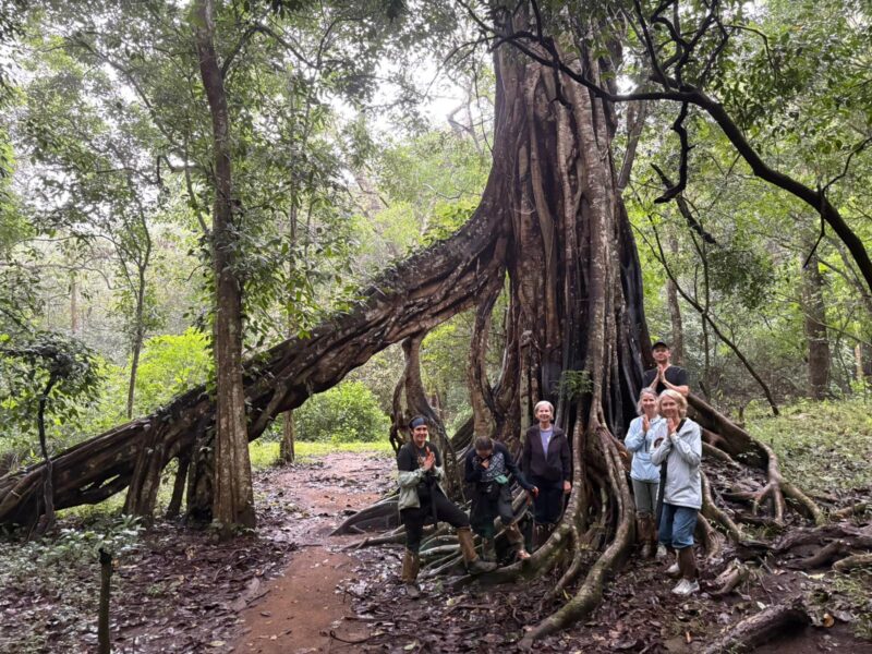 This morning, we walked in the Periyar Reserve despite the heavy rains we have had here during our stay. The rain abated during our walk, and the animals of the jungle stayed away. I encouraged the group to treat the experience of small leeches crawling on our feet, legs and abdomen as a waking meditation.