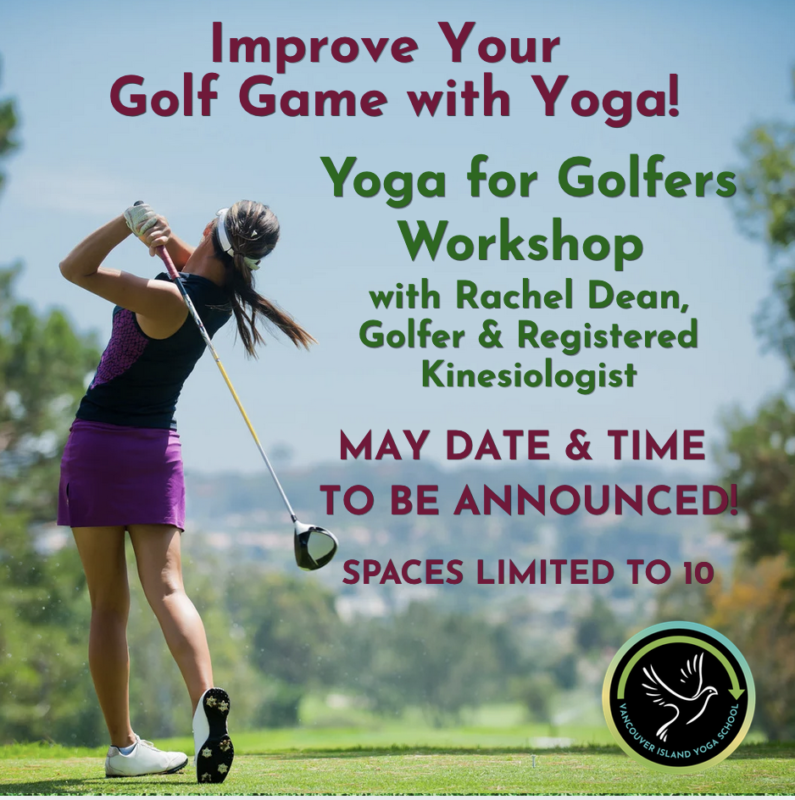 Improve Your Golf Game with Yoga! Join Rachel Dean Fellow Golfer and Registered Kinesiologist, for a workshop designed specifically for golfers. This session focuses on improving mobility, stability, and balance—key elements that support a smoother, more powerful golf swing. Sat, April 18th 4:00-5:30PM $25
